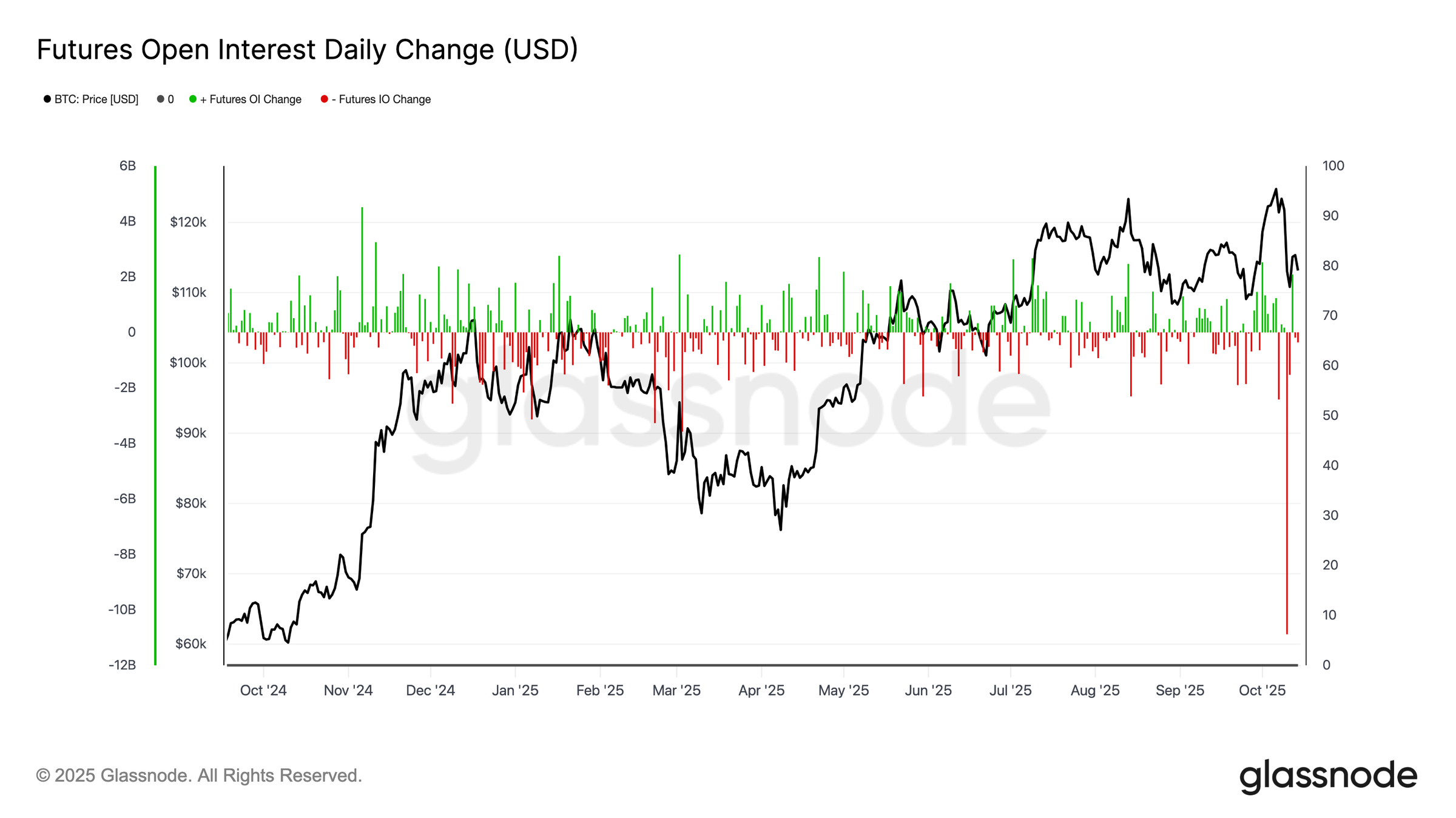 先物市場では史上最大級の清算イベントが発生した。先物建玉の単日縮小は100億ドル以上に達し、2021年5月の清算や2022年のFTX破綻時に匹敵する規模となった。