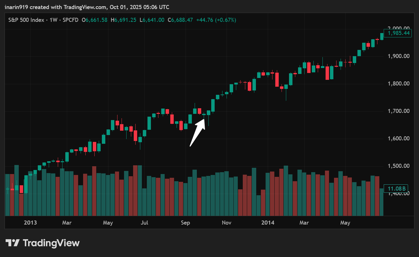 その前には2013年10月1日〜16日の16日間、オバマ政権下でも政府閉鎖が実施されている。この時は閉鎖直前にやや下落はしたものの、その後は大きく値を戻し、上昇トレンドを崩さなかった。