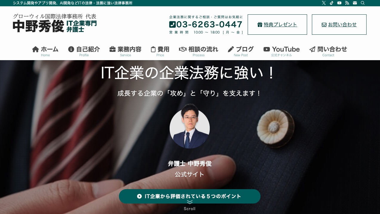 中野秀俊 弁護士(グローウィル国際法律事務所)