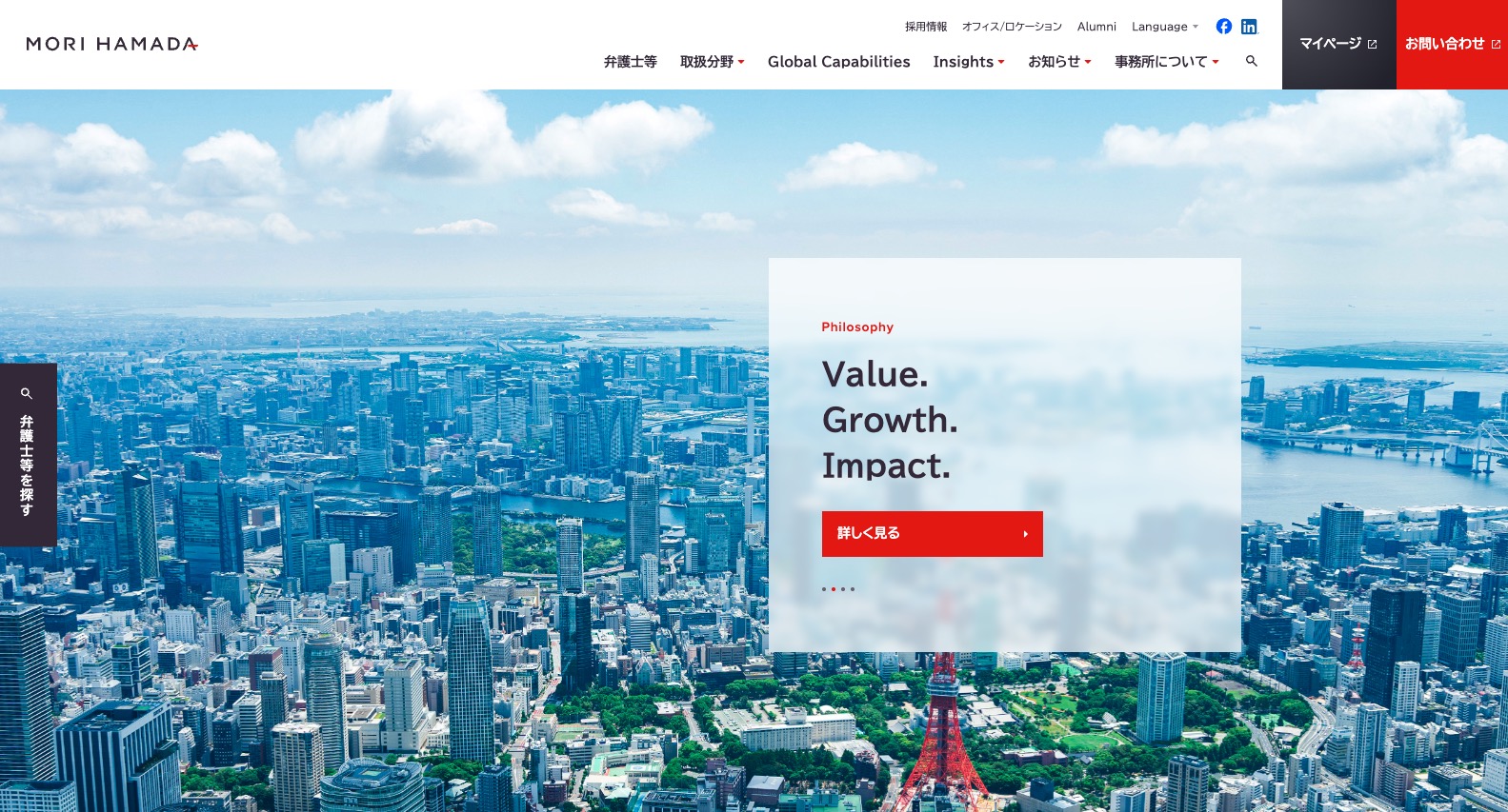 四大法律事務所の一角で、FinTech全般をカバーする体制を整えています。暗号資産・ブロックチェーンに関するセミナーや論文も発信しており、セキュリティトークンやInsurTech、BaaSまで対応領域が広いのが特徴です。