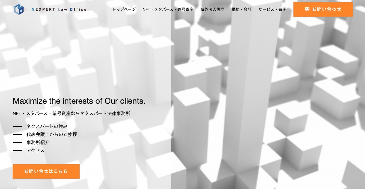 | 14 | ネクスパート法律事務所 | 東京ほか全国複数拠点 | NFT、暗号資産、メタバース、Web3全般 | https://nexpert-law.com/web3/ |