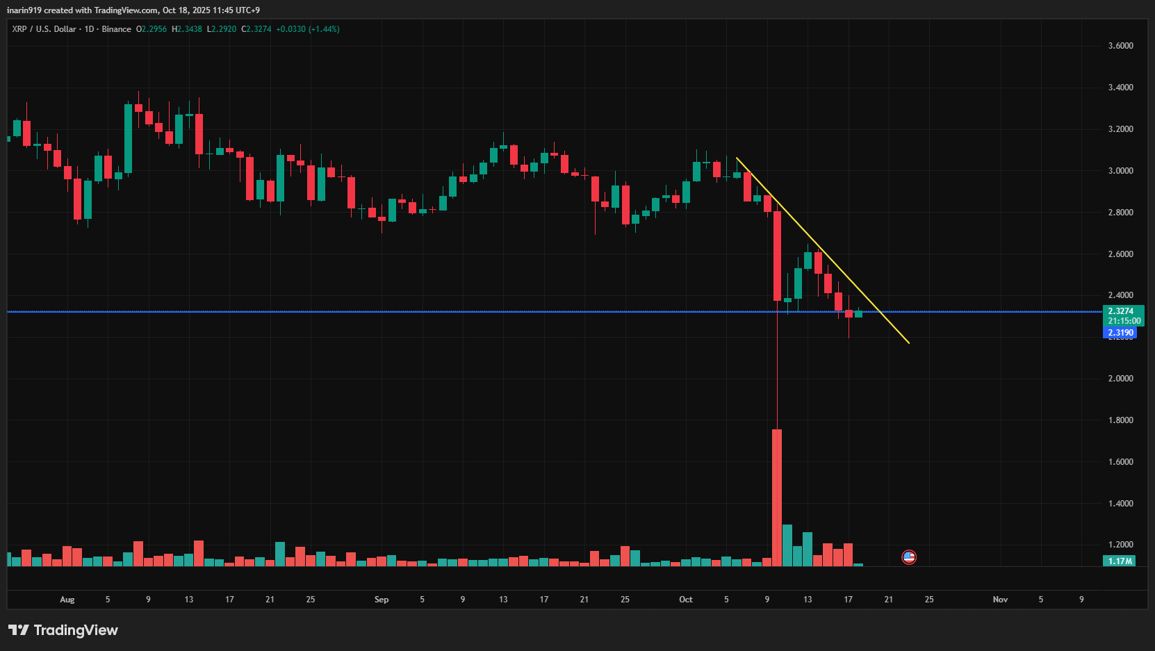 ETHは直近安値付近で下げ止まりも、XRPは下落トレンドを継続