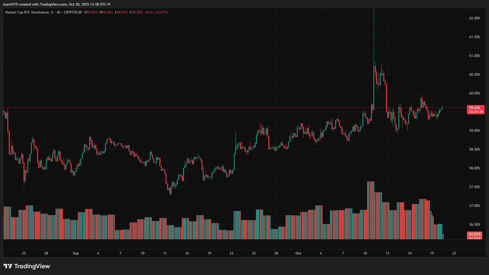 主要アルトも回復基調もBTCドミナンス上昇で資金流入は限定的