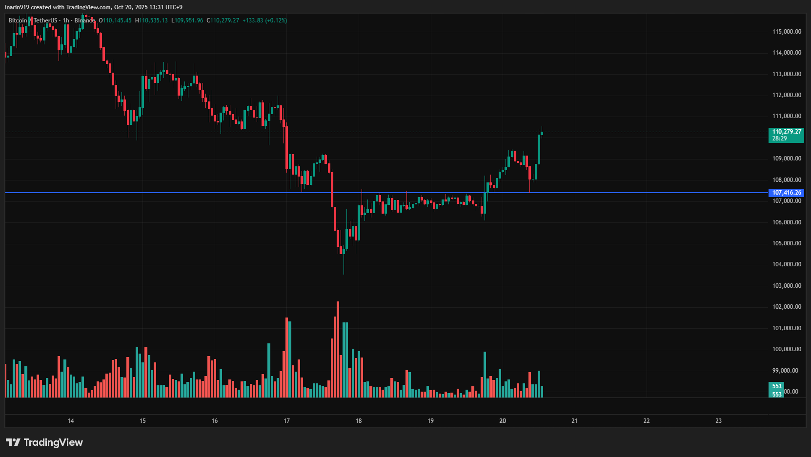 現在は直近高値を超え、重要な節目と意識されている11万ドル台前半を推移しており、この価格帯を日足レベルで維持できればさらなる上昇も期待できる。
