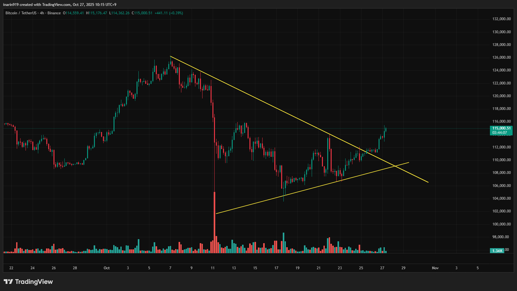 ビットコインは週末、約2週間にわたり上値を抑えていたダウントレンドラインを明確にブレイクしたことで市場に強気ムードが広がり、11万5,000ドルまで上昇。直近で意識されていた11万2,000ドル付近より上の価格を維持できればさらなる上昇も期待できる。