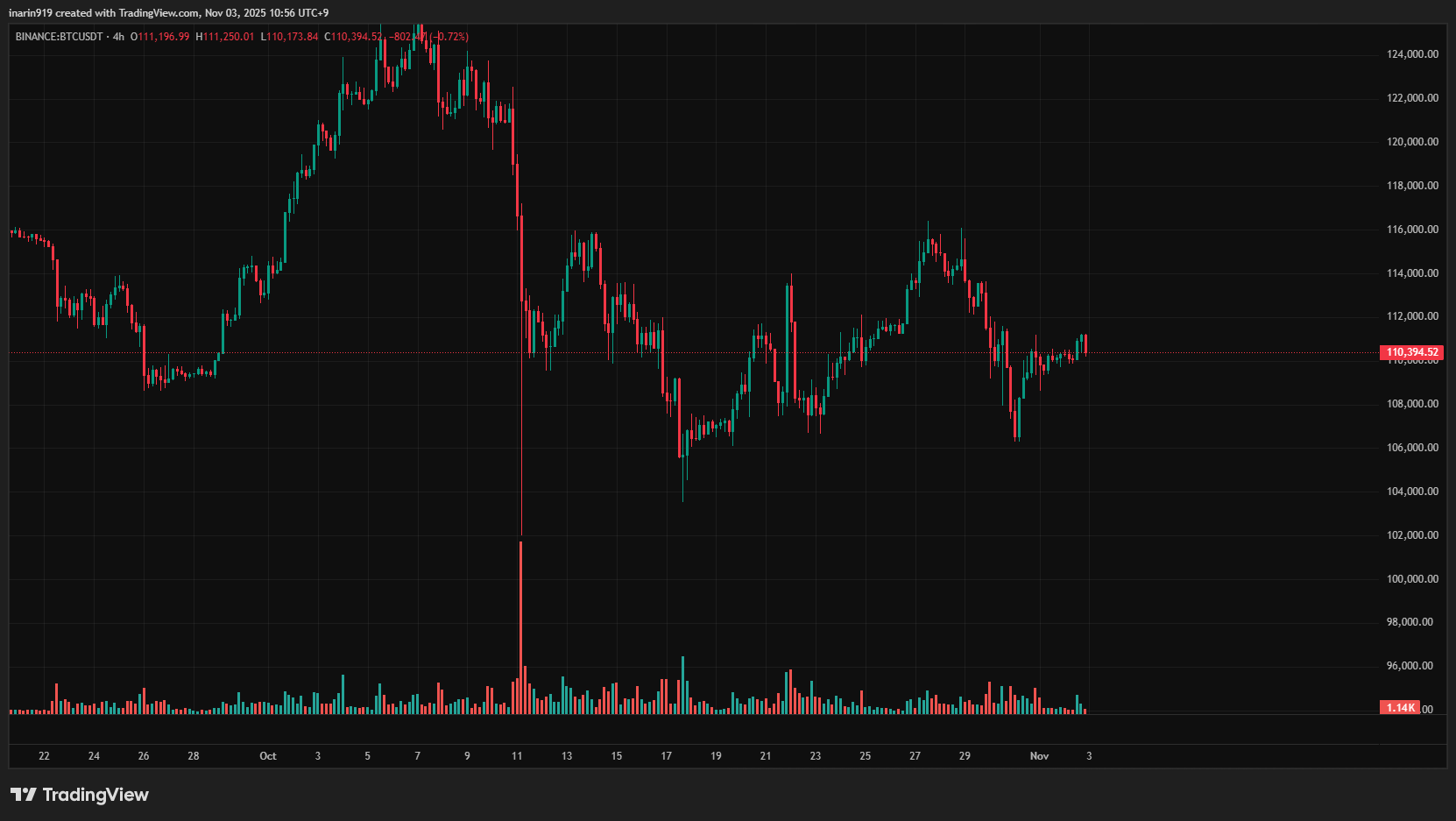 ビットコイン、11万2,000ドル~10万6,000のレンジ形成