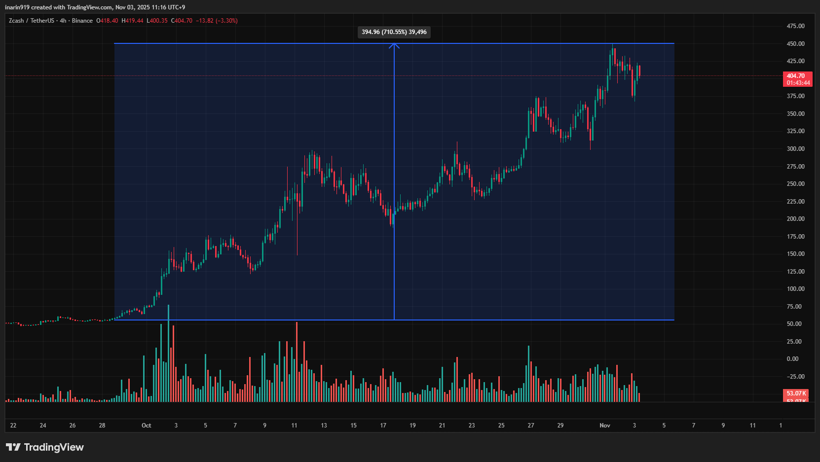 9月末の約55ドルからわずか1か月足らずで450ドルに到達、約710%の上昇を記録した。