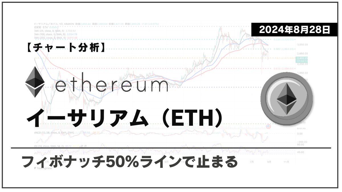イーサは現在、短期的には売り圧力が強く、主要なサポートラインを守れるかが焦点となってる。特に、フィボナッチリトレースメントの50%ラインである2,475.93ドルが重要なサポートレベルとして機能しており、このレベルを下回るとさらなる下落が予想される。