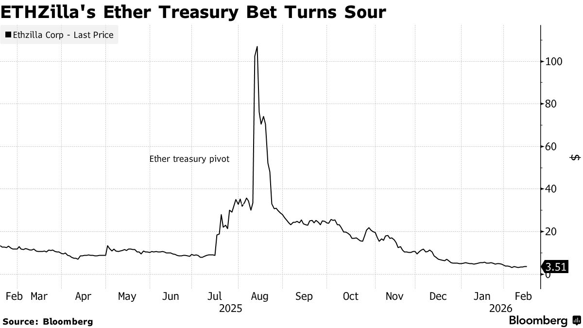 このビジネスモデルは、暗号資産価格の下落に直撃されやすい構造だ。イーサリアムは2025年のピークから約60%下落しており、トレジャリー企業の収益性を大きく圧迫した。