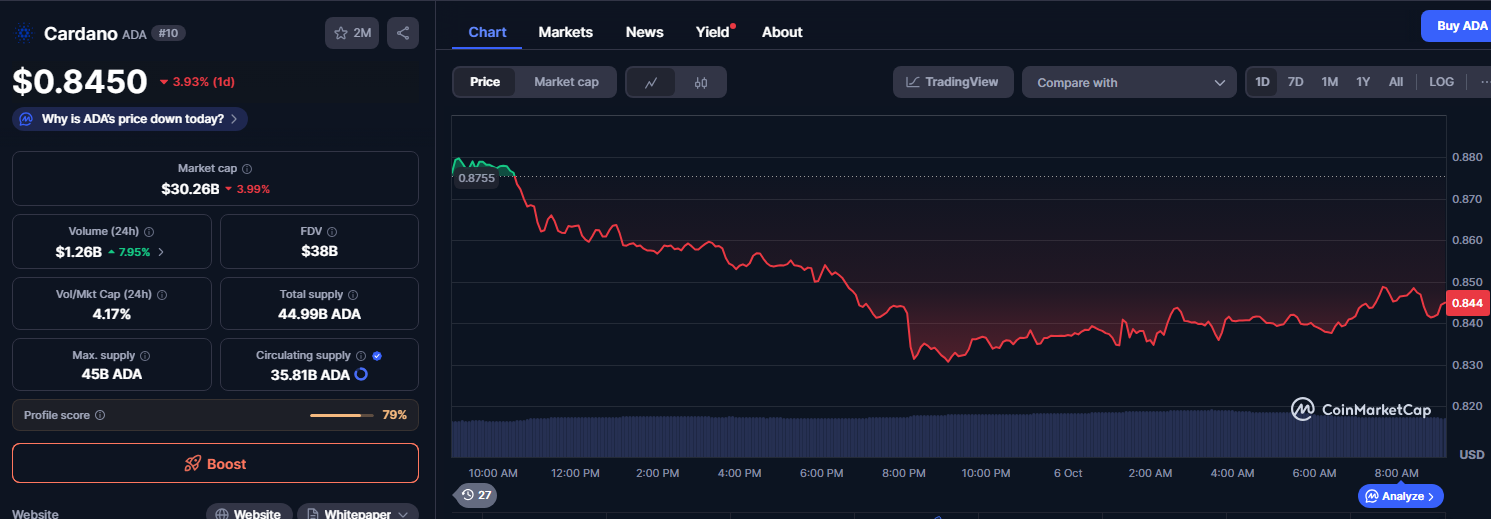 カルダノのネイティブトークンであるADAは、静かに回復の兆しを見せています。CoinMarketCapのデータによると、現在の取引価格はおよそ0.81ドルとなっています。