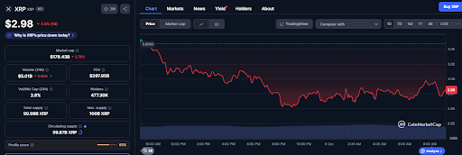 リップル(XRP)は、第4四半期に入っても引き続き安定した動きを見せています。執筆時点での価格はおよそ2.98ドルで、数週間にわたる健全な調整を経て堅調に推移しています。