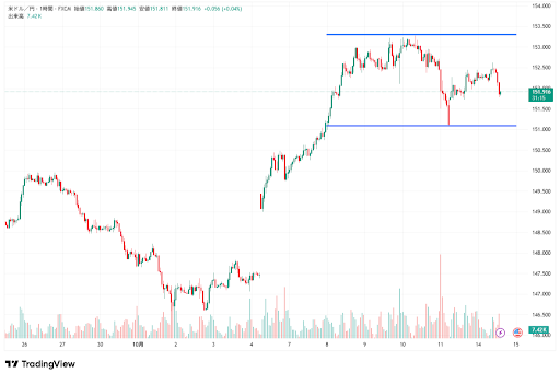 しかし、公明党の連立離脱により、今月20日以降に召集される臨時国会での首相指名選挙で高市氏が選出されるか不透明感が高まったことから、14日14時時点では151円台後半を推移中と、高市トレードの巻き戻しが起きた。