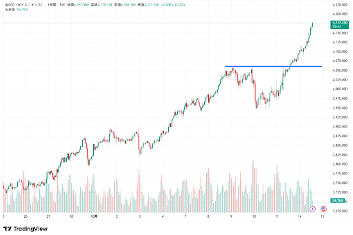 テクニカル面では4,060ドル付近を支えに継続した上昇が予想される。一時的な調整局面は発生するが、一筋縄では解決できない問題が山積みであるため、方向性は今後も変わらないはずだ。
